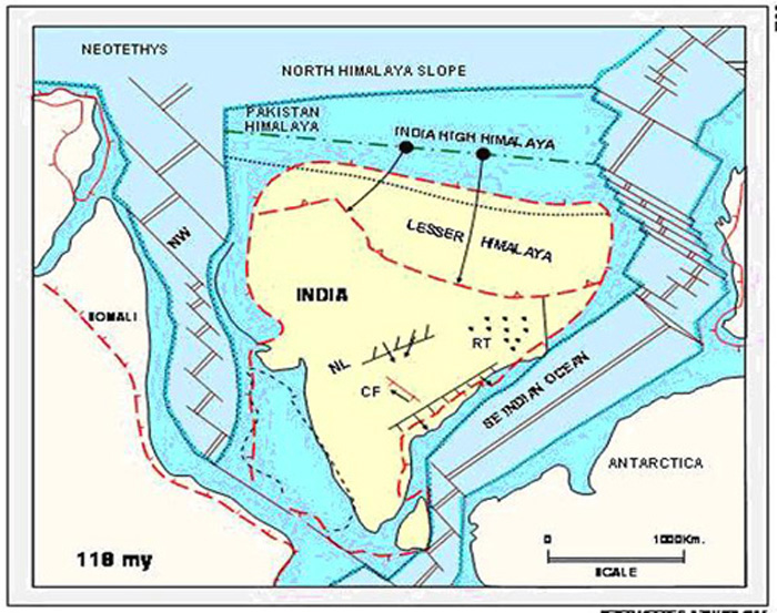 During Permo – Carboniferous and Early Mesozoic times, the rift-related grabens were filled with land- derived coarser clastics, carbonaceous shale and coal. The arenaceous facies comprising ill sorted sand, derived from granitic provenance in the west filled the graben. This is true of all the Gondwana sediments present along the east coast. A number of the Gondwana time related trijunctions existed along the east coast of India, which ultimately resulted in the break away of India from Antarctica. After the break-up of the Gondwana land, a distension took place along the Bengal shelf which resulted in the outpouring of Rajmahal basaltic lava during Early Late Cretaceous (118 + 2 m.y.). This volcanic lava covered the Gondwana topography in West Bengal.